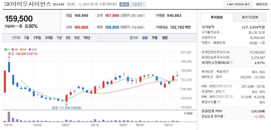 Sk바이오사이언스 주가 네이버 / 켐온 주가 오후 들어 급등, 상한가 마감↑ SK바이오사이언스 ... : Jun 07, 2021 · sk바이오사이언스 주가 정부가 노바백스 코로나 19 백신 2000만 건을 확보해 관련주에 관심이 쏠리고 있다.. 지난 7일 sk바이오사이언스 주가는 15만3500원으로 전날보다 1.60% 하락했고 제일제약은 4만 3200원으. Mar 19, 2021 · sk바이오사이언스 공모주, 청약자 절반 '3040' 역대 최대인 64조원에 가까운 자금이 몰린 sk바이오사이언스 공모주 청약에서 30·40세대가 청약자의. 이들 6곳의 증권사는 일반청약자 물량 573만7500주를 나눴는데요. We would like to show you a description here but the site won't allow us. Jun 07, 2021 · sk바이오사이언스 주가 정부가 노바백스 코로나 19 백신 2000만 건을 확보해 관련주에 관심이 쏠리고 있다.